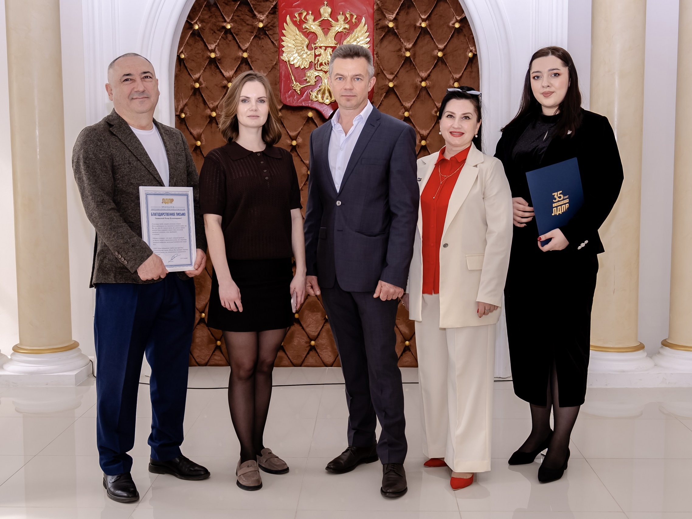 Лучшим сотрудникам колледжа были вручены Почётные грамоты от ЛДПР, а директору Фатиме Хасановне Агирбовой передано Благодарственное письмо от Леонида Слуцкого.