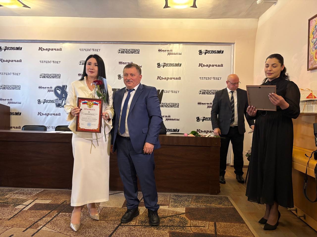 Александр Чайка и Олег Кротов поздравили журналистов с профессиональным праздником и выступили перед редакциями пяти печатных изданий Карачаево-Черкесии, выходящих на пяти государственных языках республики: «День республики», «Абазашта», «Къарачай», «Ногай давысы» и «Черкес хэку».
