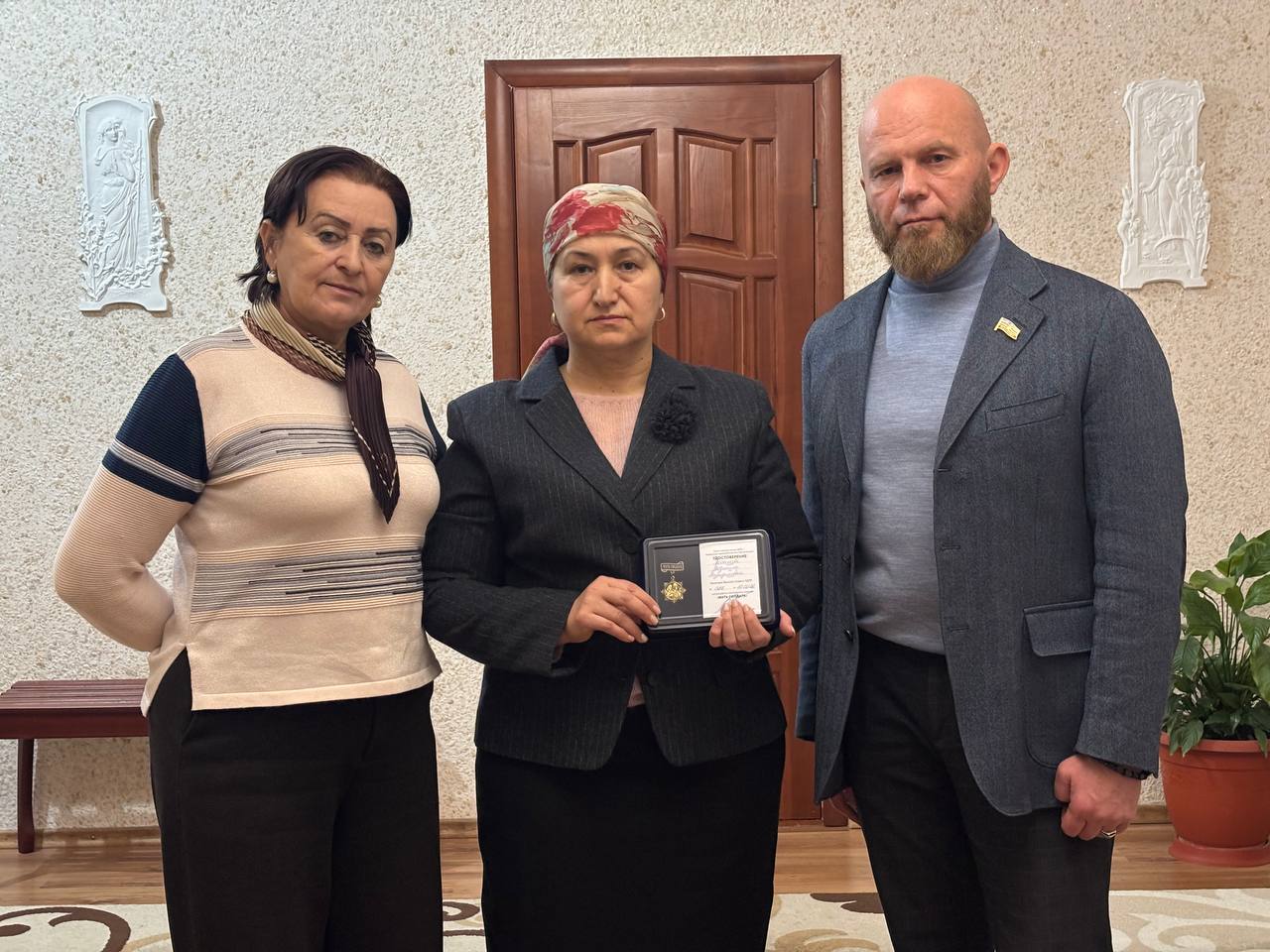 В знак уважения к материнскому подвигу Александр Чайка вручил Людмиле Нуридиновне нагрудную медаль «Мать солдата».