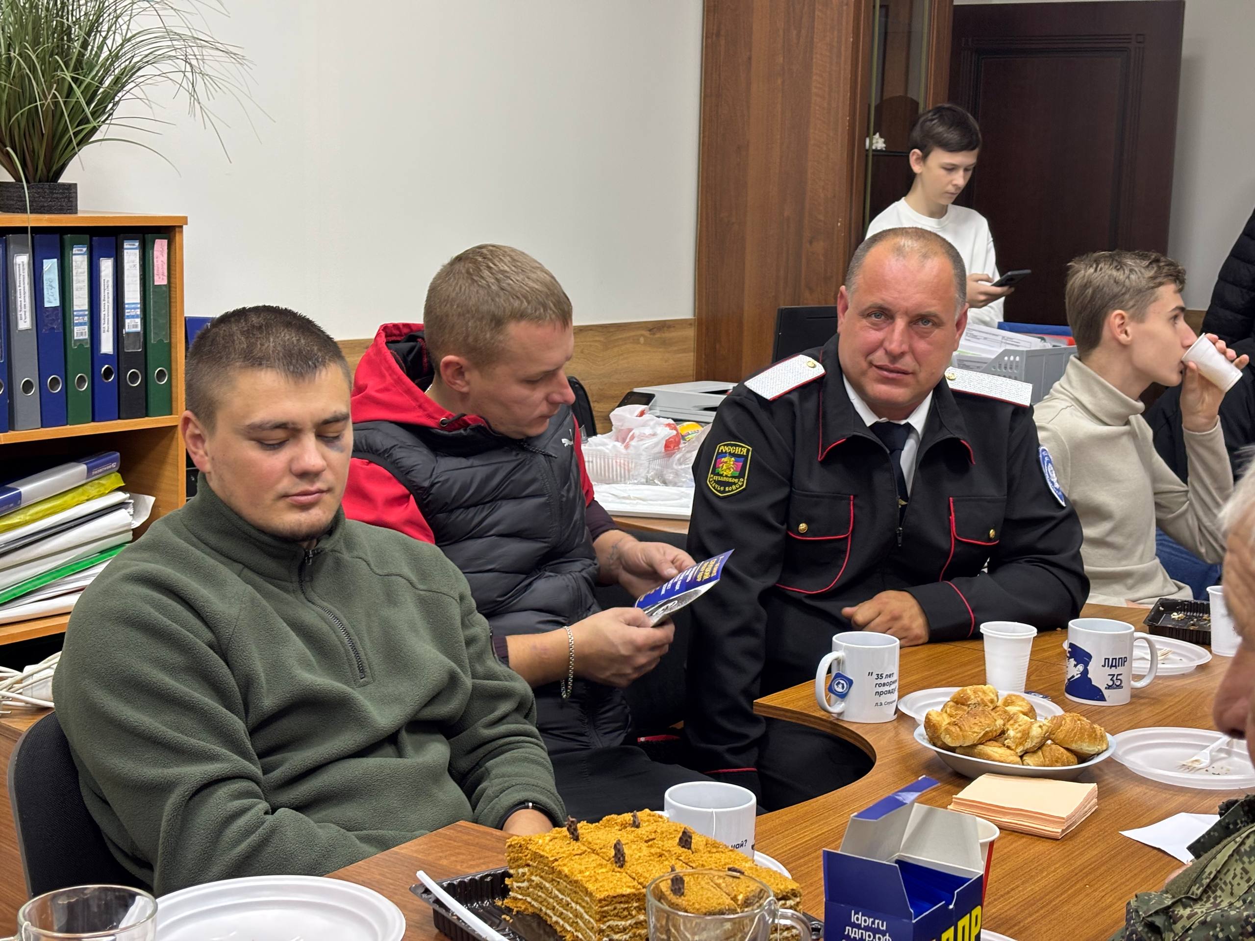 После митинга — не ушли домой. Сели за чай. И поговорили по-настоящему.В тёплой атмосфере штаб-квартиры ЛДПР КЧР, за чашкой чая, мы продолжили разговор. О казачестве — как о живой традиции, о станице Сторожевой, её истории, людях и будущем. О том, как сохранить дух, уважать корни и поддерживать казаков — не только как символ, но как реальную силу порядка, патриотизма и сельского развития.