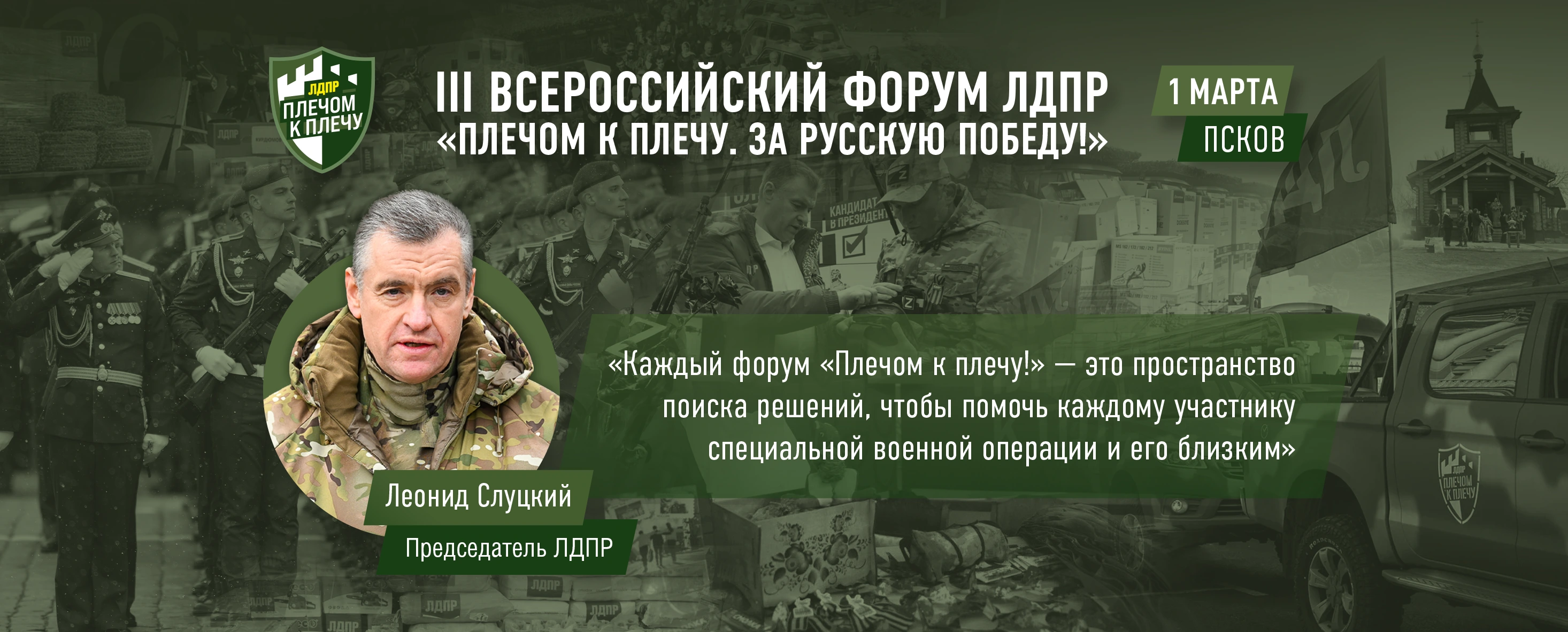 ЛДПР продолжает системную работу по консолидации общества вокруг задач специальной военной операции. 1 марта 2026 года в Пскове состоялся III Всероссийский форум содействия СВО «Плечом к плечу. За Русскую Победу!». Выбор города проведения глубоко символичен: именно здесь, на псковской земле, в годовщину легендарного подвига десантников 6-й роты, форум обретает особое звучание.